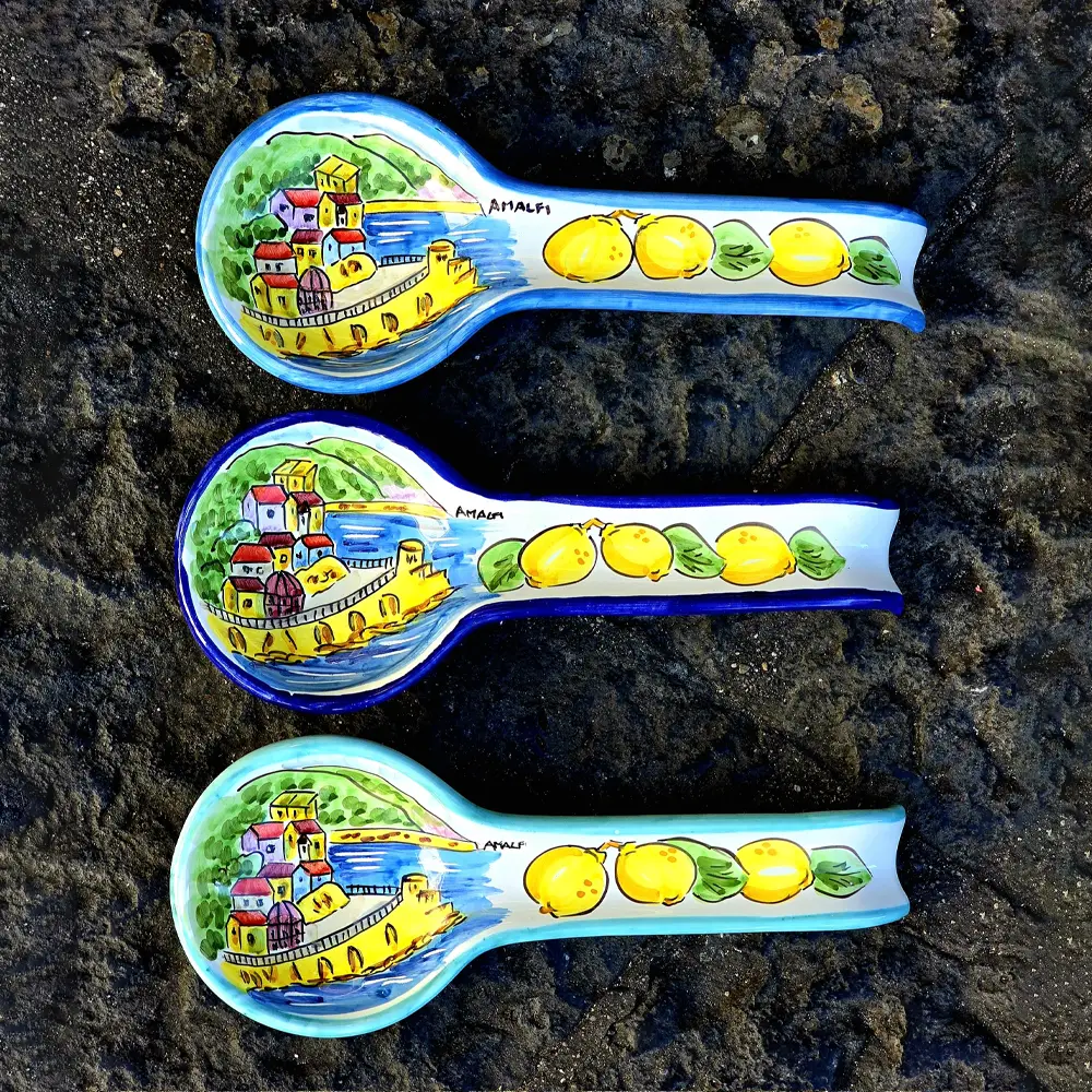 Large hand-painted spoon rest featuring the iconic Amalfi landscape, both practical and decorative.